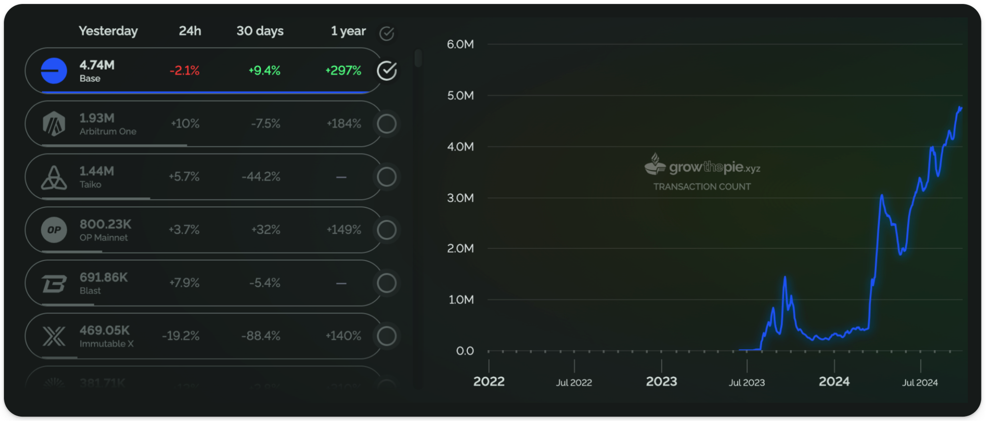 L2s are doing a great job handling Ethereum’s growing transaction load, but the numbers tell us that pressure is building. Take Base, for instance. Coinbase’s optimistic rollup has seen its usage spike nearly 300% in 2024, driven by meme coins and other trending projects. The fact that Base and other L2s are seeing this level of adoption is exciting, but it also signals a looming challenge.