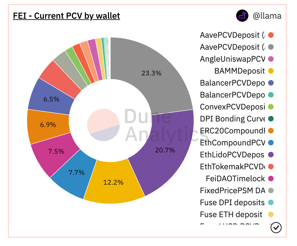 As previously mentioned, Fei’s PCV is deposited across a variety of different protocols. Although the risk is spread across these protocols, if one or more were to be exploited, or if DeFi were to suffer a major systemic event, a substantial portion of PCV could be lost, putting FEI, and the many Fuse pools in which it deposited, at risk of becoming undercollateralized.