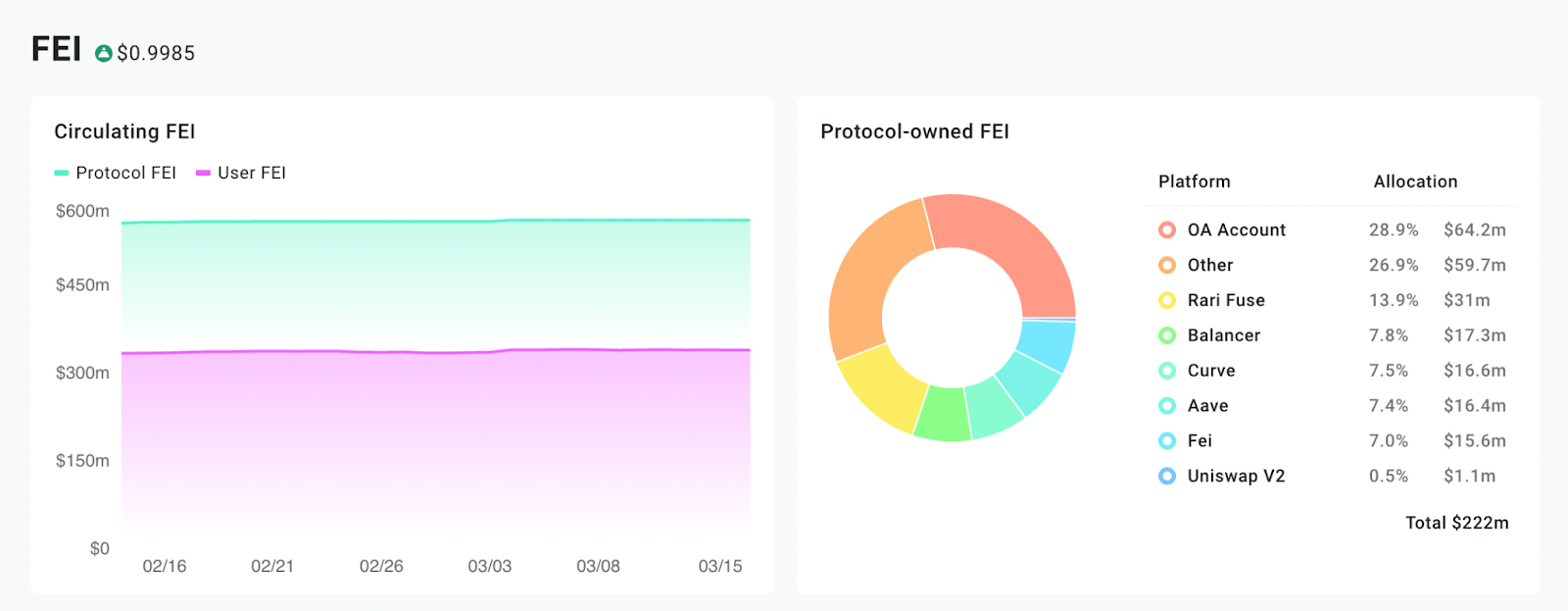 The first project within Tribe DAO is Fei Protocol. It’s the issuer of the FEI stablecoin, the 11th largest stablecoin by market cap, with a supply of more than $558 million.