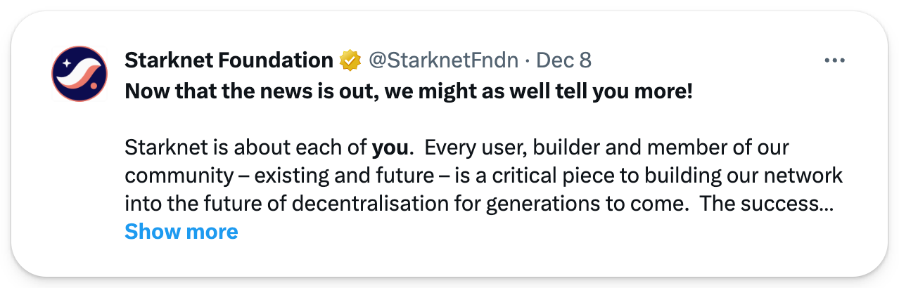 The Starknet Foundation, steward of the Starknet L2, just published an update on its plans to distribute 1.8 billion STRK tokens as part of its user rewards and network rebates program.