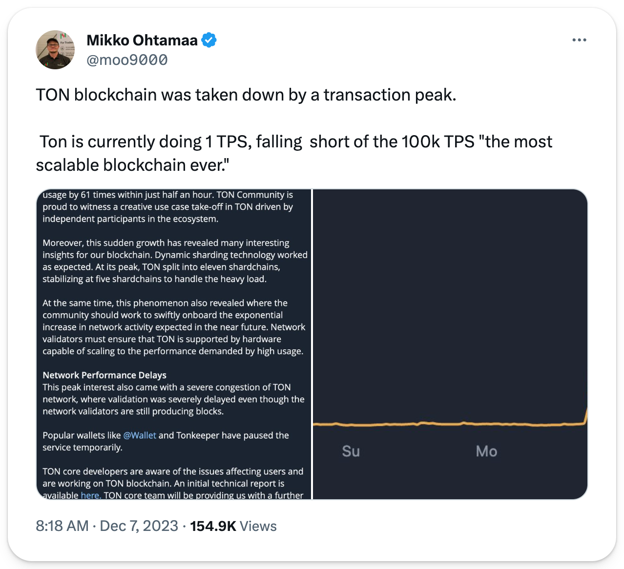 This sudden surge in activity led to over 2.5 million pending transactions, causing severe congestion and leading popular TON wallets to temporarily pause services. The slowdown was attributed to validator nodes operating on weak hardware, unable to handle the 50-100 times increase in network load within half an hour.