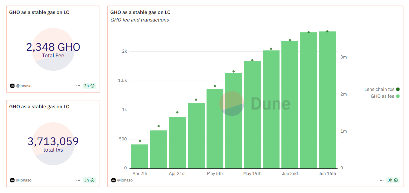 GHO is Aave's decentralized dollar-pegged stablecoin. Instead of being backed by cash deposits, the token is supported by the range of onchain assets supplied as collateral within Aave's liquidity protocol. GHO is the gas token of Lens Chain and has been used in more than 3.7 million transactions on the network to date.