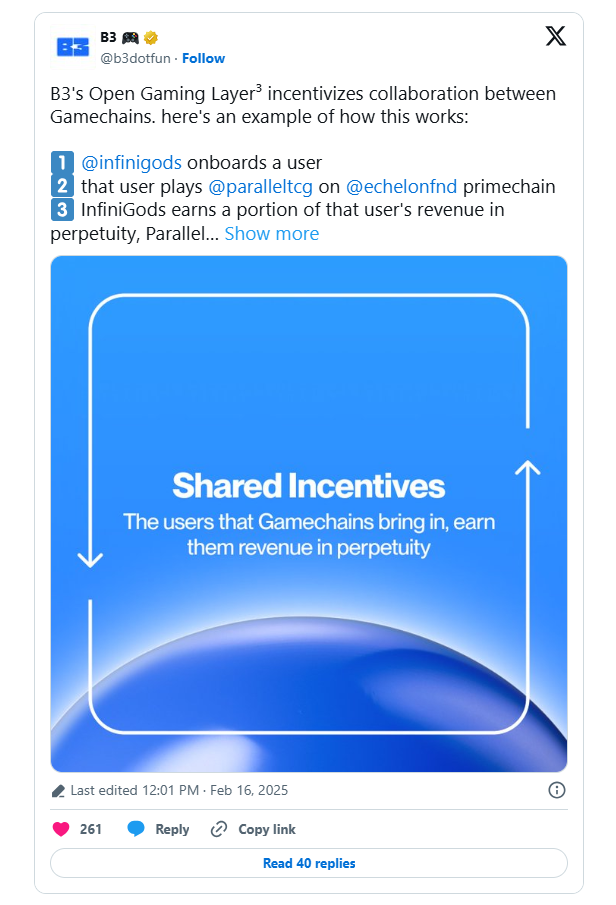 Developed by alumni from Coinbase and Base, B3 is built from the ground up to support open gaming—not just on its own layer, but in additional spinoff appchains built atop its infra.