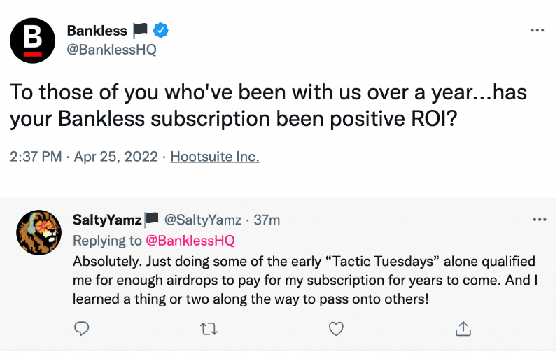 Lock in the best deal on Bankless ever. Includes Airdrop Guide! $16 / mo. Insane ROI.