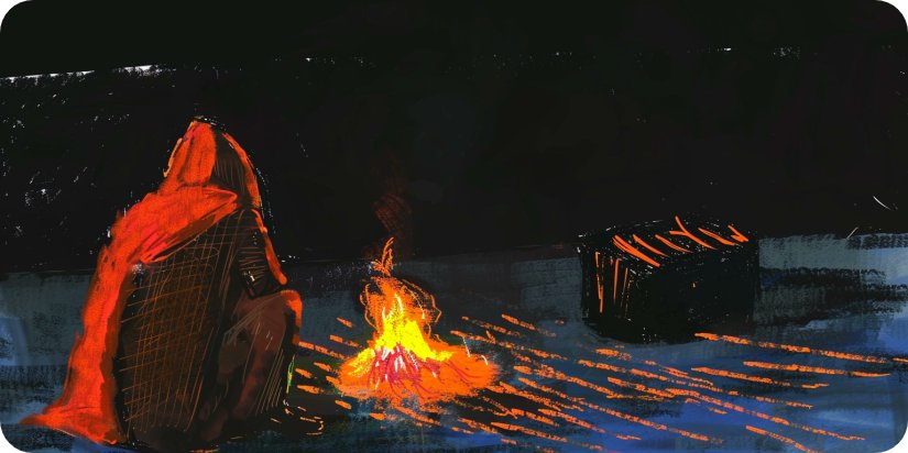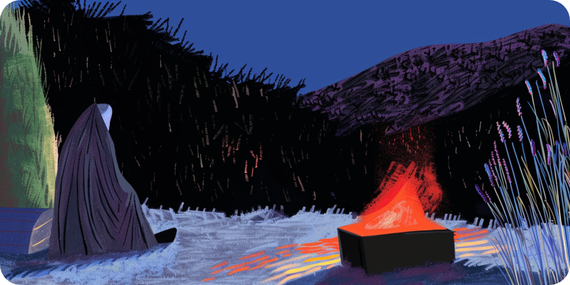 - 🔴 ––sref 3528972627 — Alas, this is the style reference code, also begun with two hyphens. Midjourney can generate a campfire scene in literally billions of different aesthetics, so this particular code activates a specific, hand-drawn charcoal-looking aesthetic.