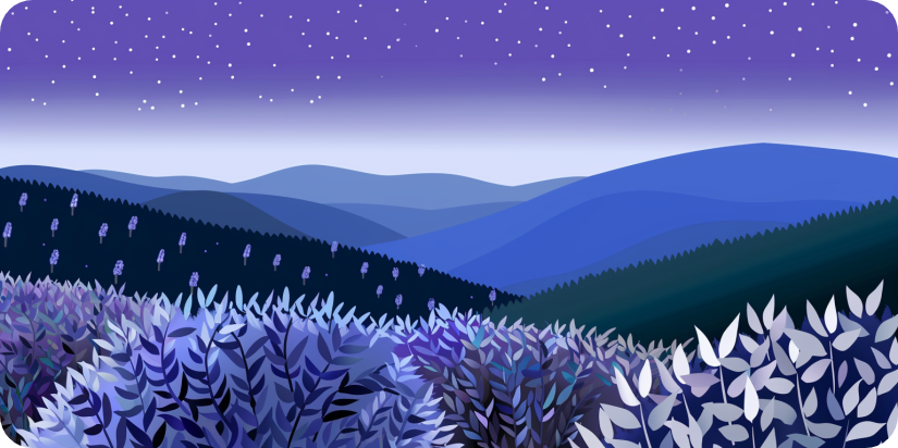 Let’s say you want to combine the visuals of the campfire picture above with the style of the Midjourney output below to target a more purplish look while still maintaining a scratchy, charcoal-like aesthetic.