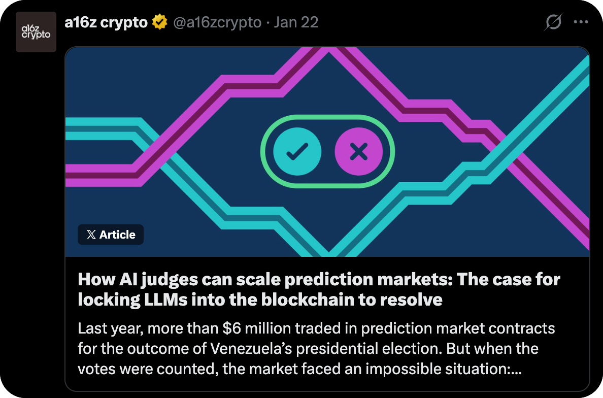 Last week, a16z published a proposal for using LLMs as prediction market judges.
