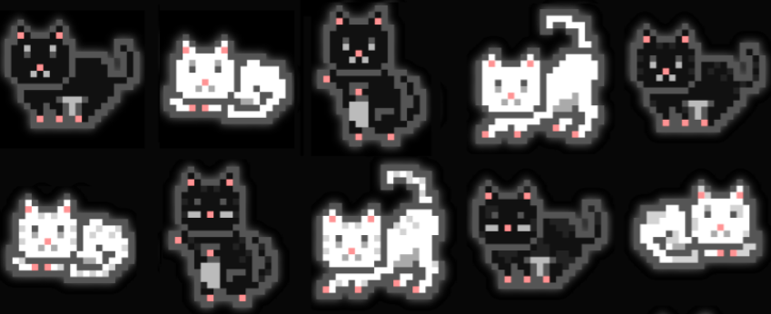 - Genesis Cats have an array of expressions and display various shades of grey, Black Genesis cats are only featured in either Standing and Pouncing poses. White Genesis Cats are only displayed as either Sleeping and Stalking.