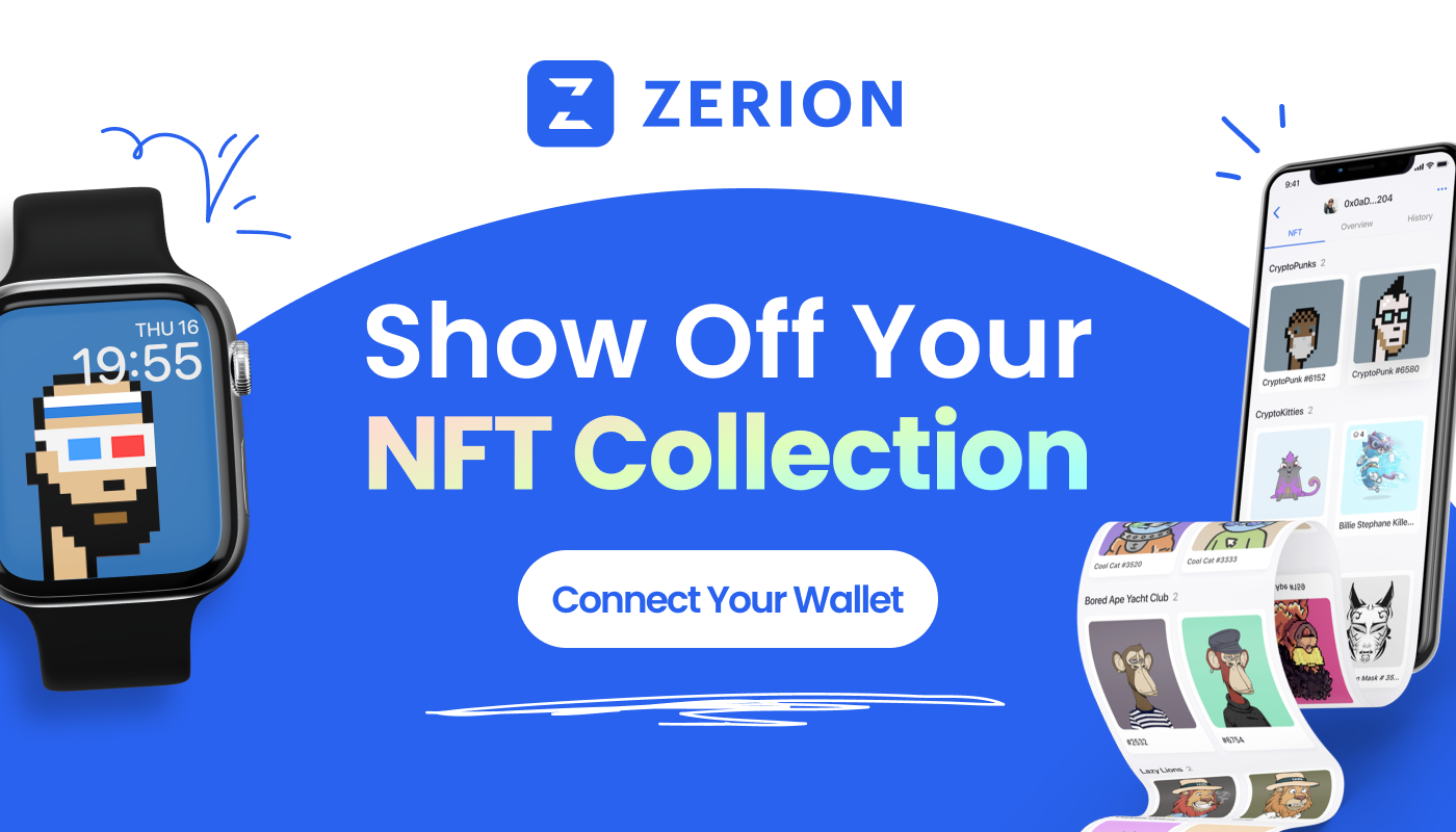 So you spent months building up your collection, but you’re still viewing your NFTs on a website that looks like it’s stuck in 2015? Have some fun with Zerion – send NFTs between wallets, convert them to iPhone widgets and flex them on your Apple Watch - all alongside your entire crypto portfolio.