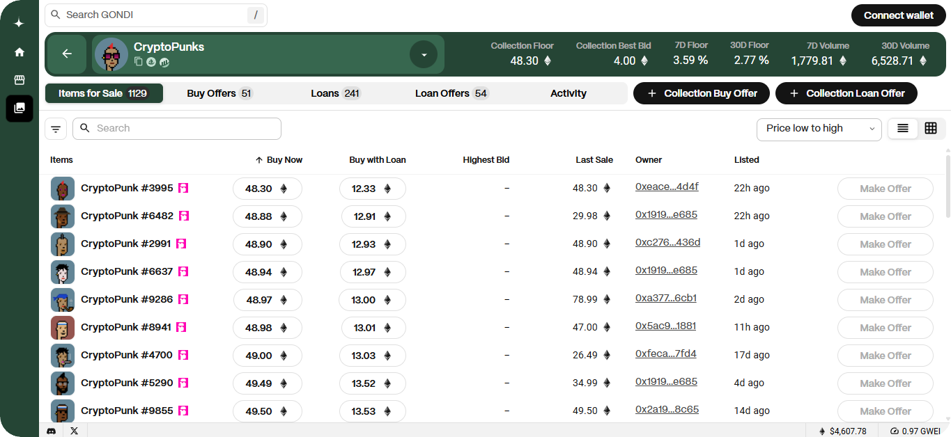Instead, buyers can combine their own funds with existing loan offers on GONDI in a single transaction, with the NFT moving into escrow until the loan is repaid.