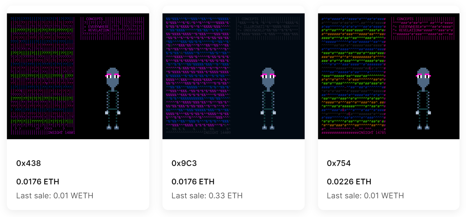 These NFTs accumulate and evolve onchain based on a trait called Insight over time, with the rate of accrual affected by whether the NFT is transferred or remains stable. This innovation makes each Corruption(s*) NFT a dynamic, evolving piece of art and places these works among the more interesting digital artifacts from 2021 in my mind.