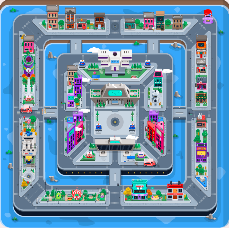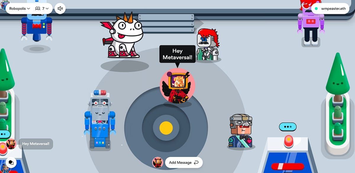 See, The Microverse isn’t just a tool for NFT projects to build 2D experiences for their communities — it’s also the range of worlds built via The Microverse that players can surf across, of which Robopolis is among a handful of early examples.