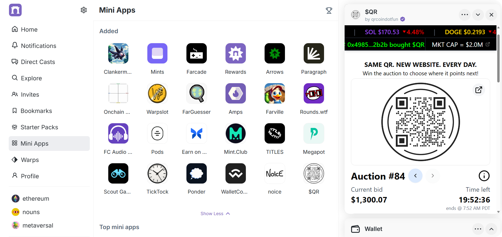 Three weeks ago, winning bids were going for around $50, while the past three auctions have all gone for +$1,400 as interest around the platform has grown. Part of this growth has been spurred by qrcoin's Farcaster Mini App, which has over 23,000 downloads and counting.