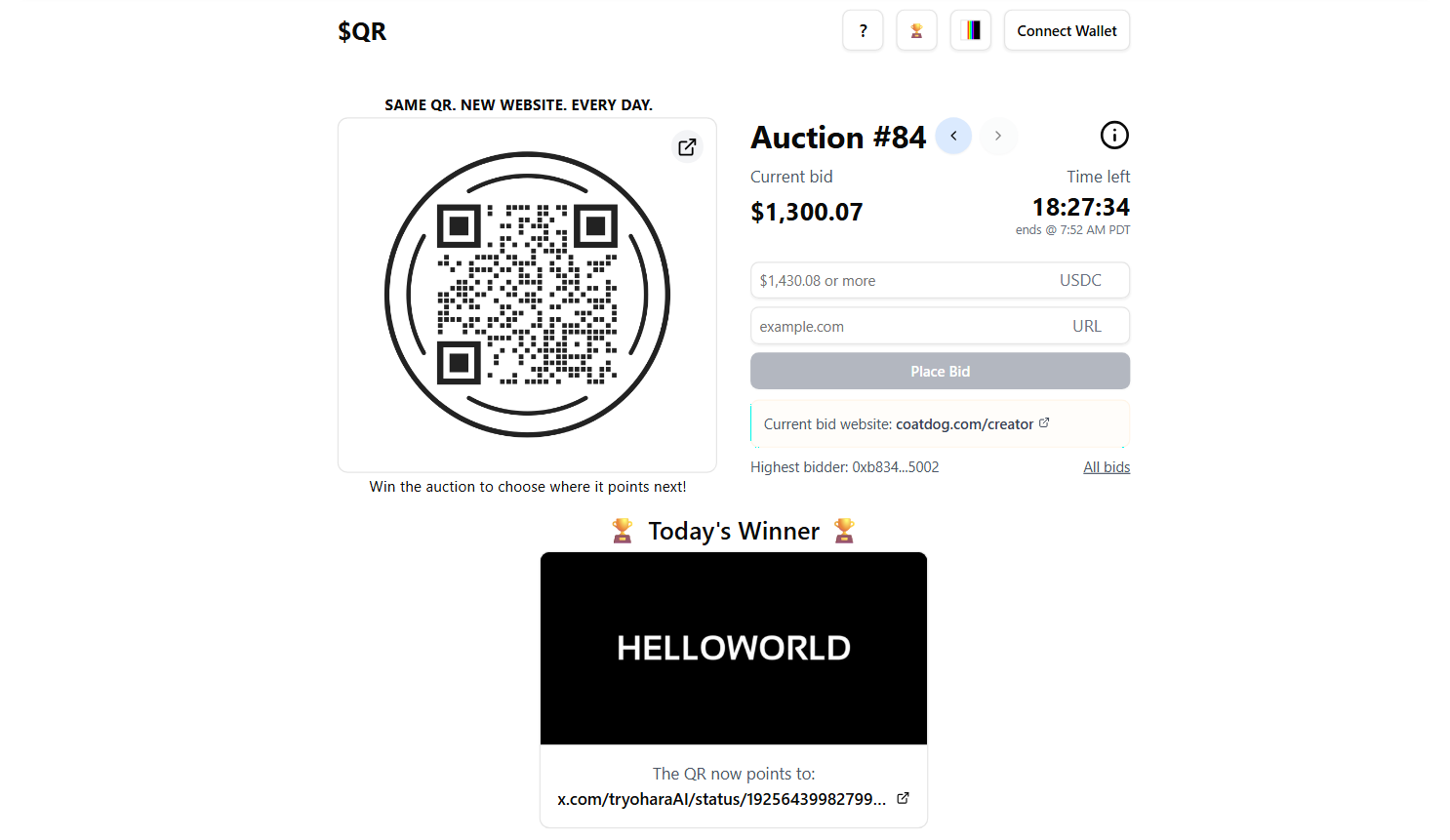 That's why one newer project on Base recently caught my eye, qrcoin.fun, as it's an interesting new riff on daily onchain auctions.