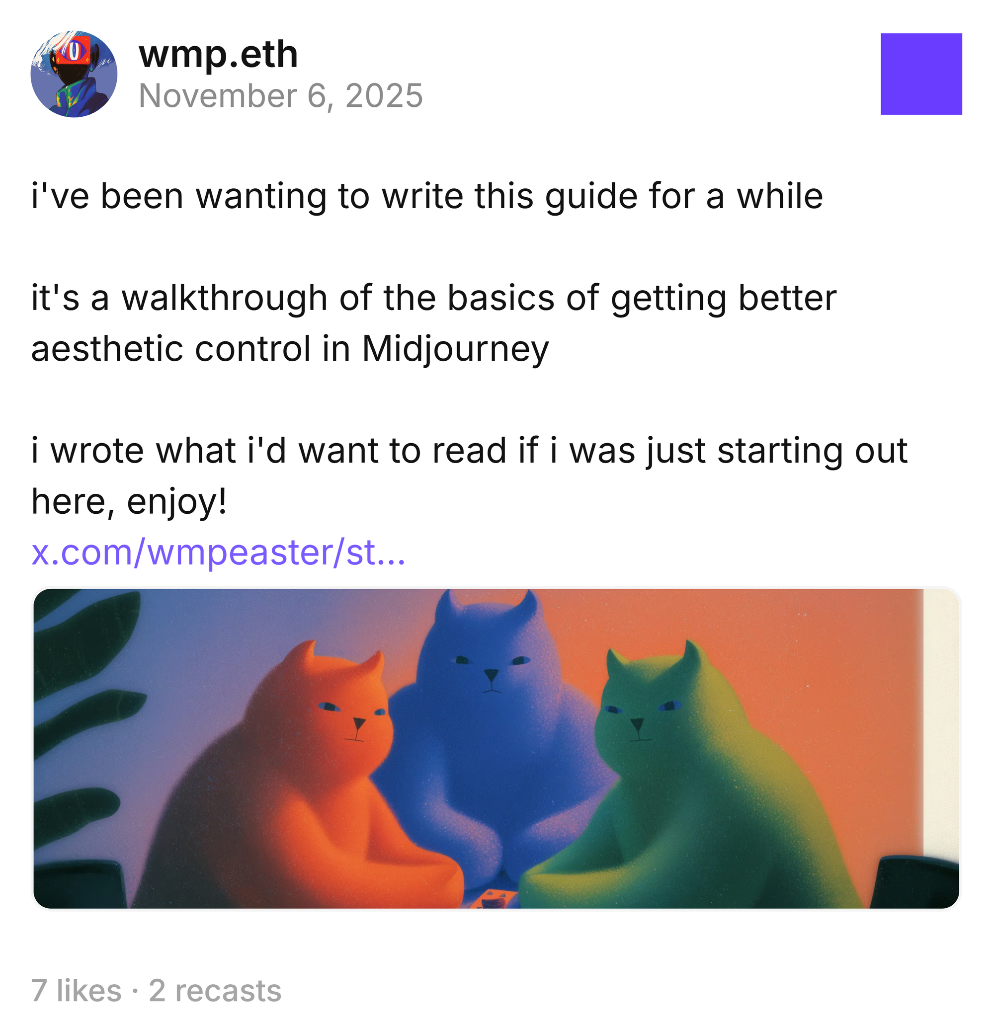 I'll give you a related personal anecdote. Today, I posted a longform X article, "Midjourney Style Primer."