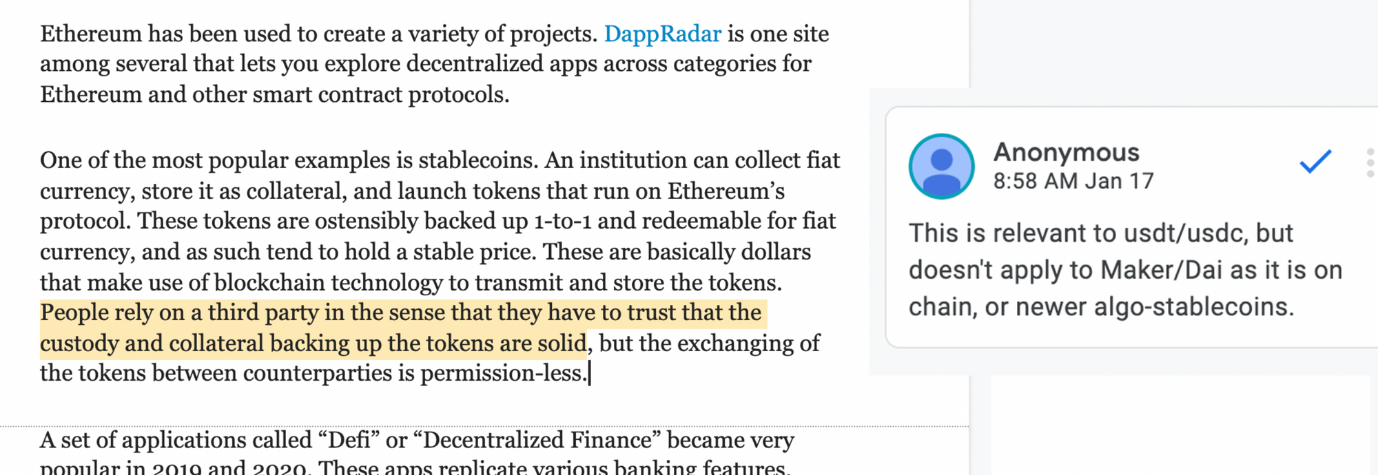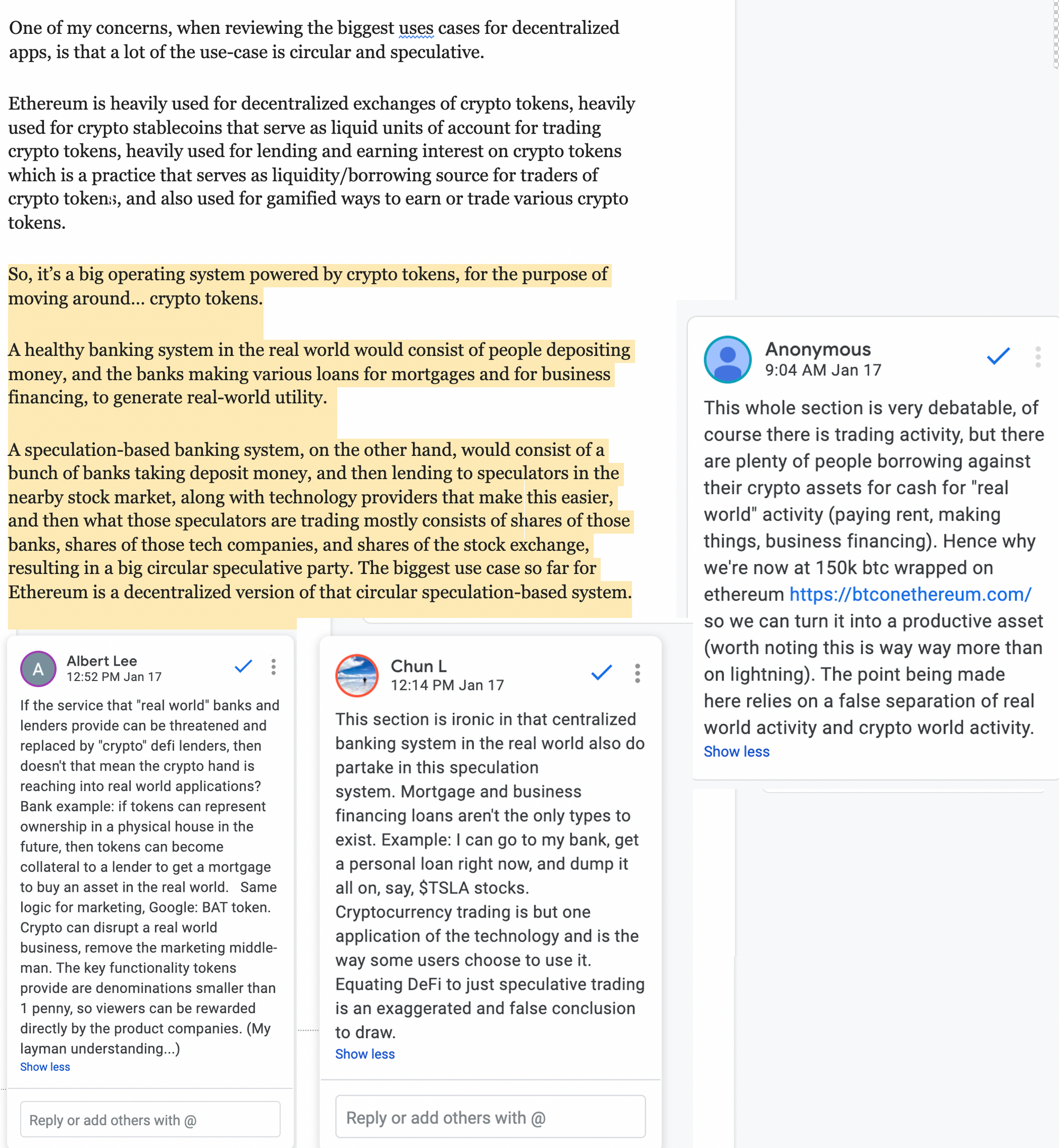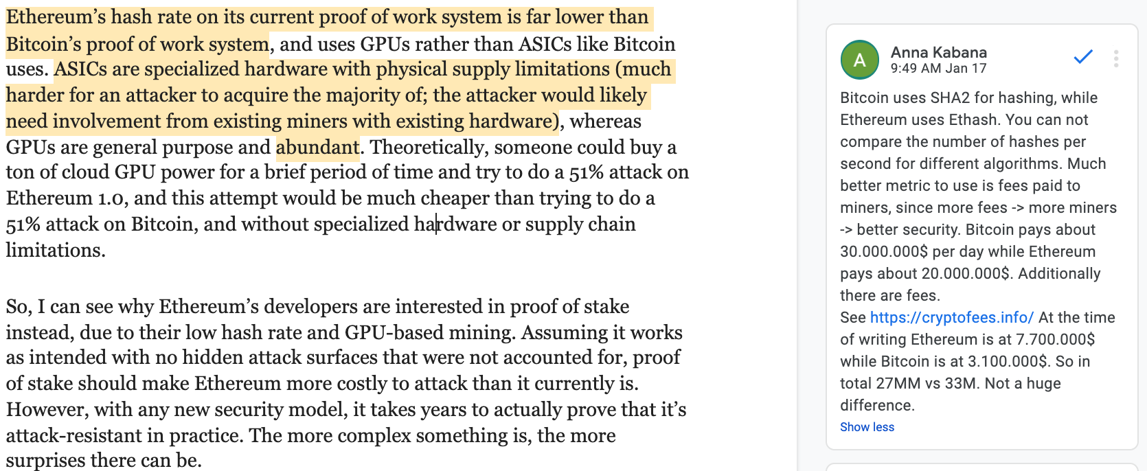 So that’s exactly what we did. And the amount of responses was amazing! We got over 50 comments in the document, including a number from Vitalik.
