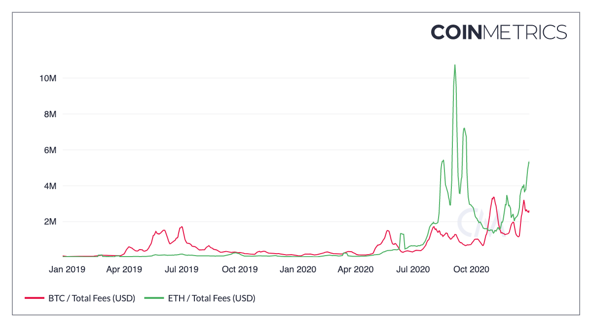 For reference, here are daily fees collected for Bitcoin and Ethereum since 2011: