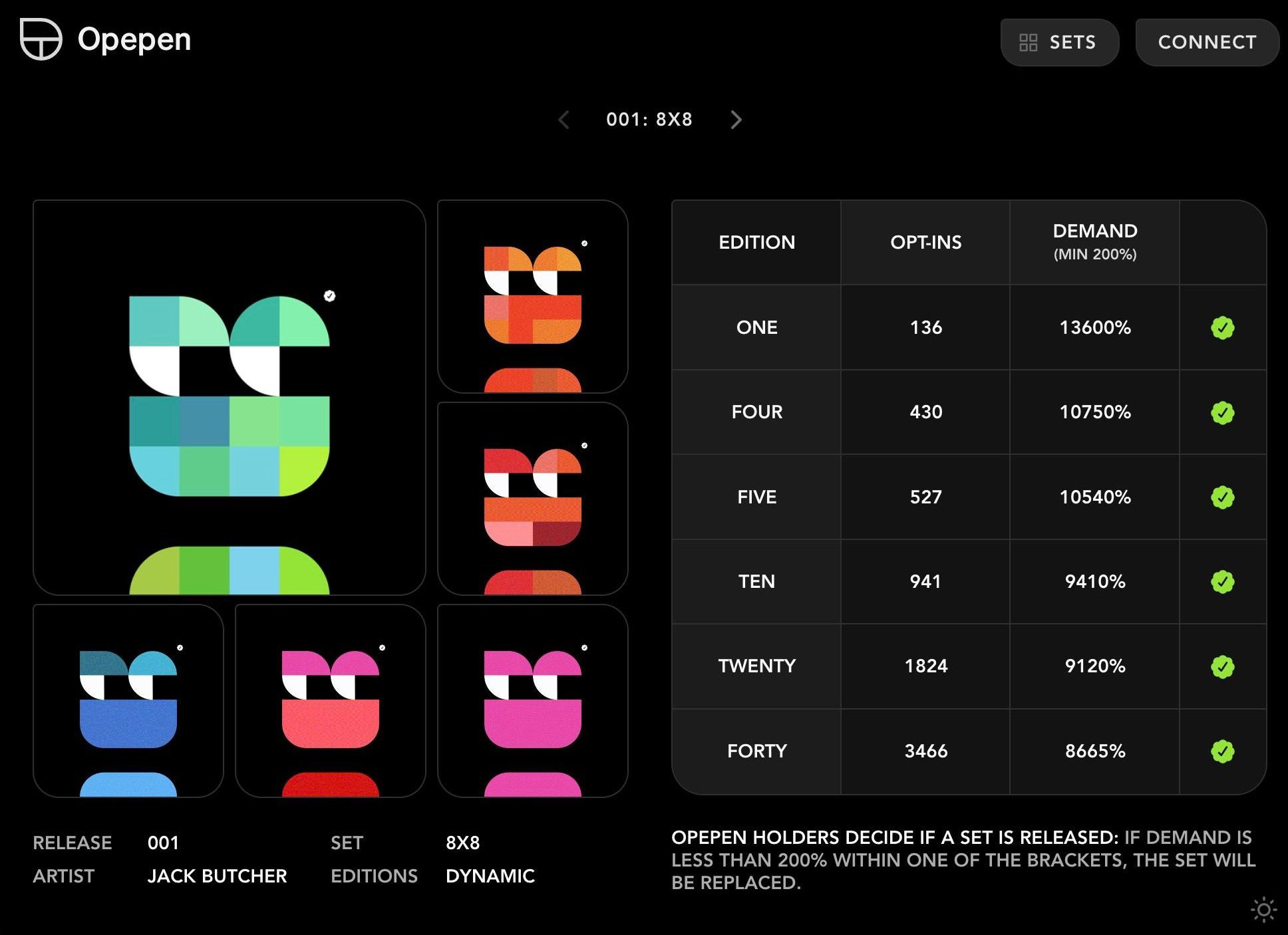 Only four Openen āSetsā have been dropped to date, meaning the wider collection is only 2% complete at the moment. So far thanks to major demand, all Sets were considerably oversubscribed with opt-ins. The first four were: