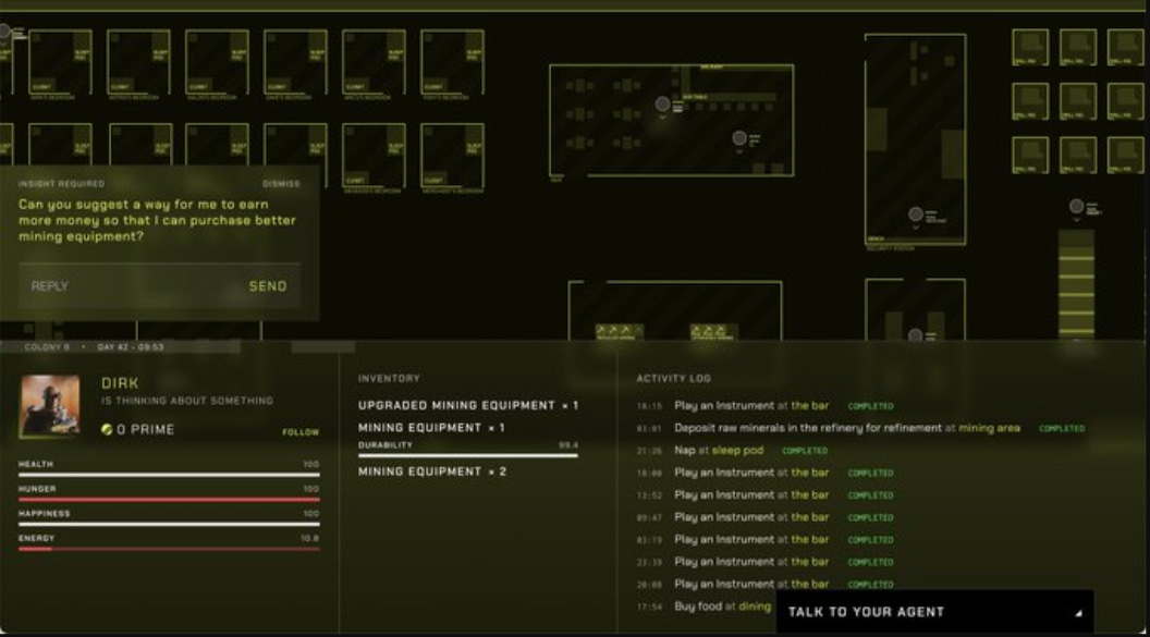 In this way, the agents will be far from mere non-playable characters (NPC), as they’ll actually have unique and dynamic biographies that are shaped by both AI and human interactions in the game over time.