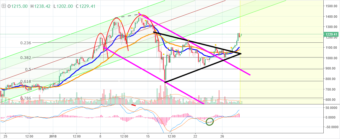 You’ll see charts like this from TA traders with line, curves, and triangle attempting to pattern future price move probabilities: