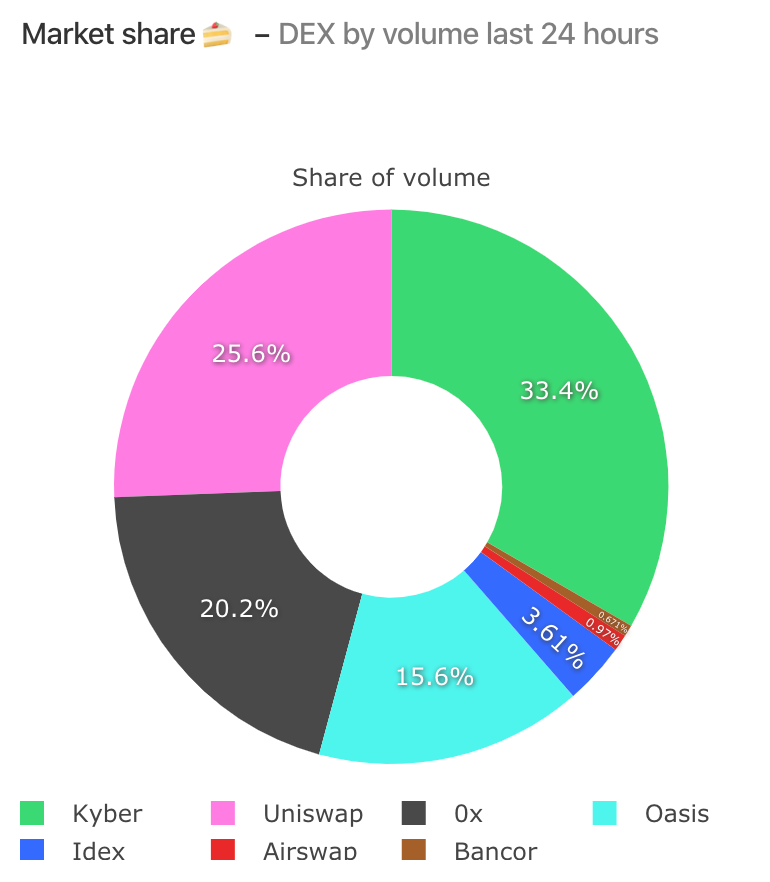 (Above) Decentralized exchange marketshare, Uniswap & Bancor are the AMMs
