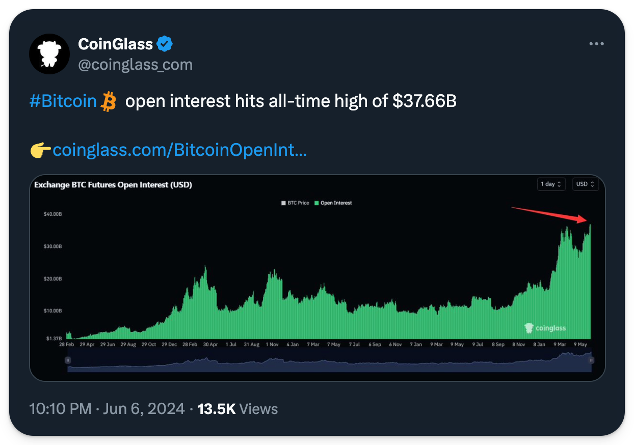 While Bitcoin set new records this week, a new all-time high was not one of them. Instead, BTC futures positions reached a new record as open interest (OI) surpassed $37.7B. The surge in OI coincides with record inflows into spot bitcoin ETFs that brought Bitcoin from $68.5K to $71K, as BlackRock’s IBIT displaced GBTC as the largest ETF. On the back of seemingly strong employment market data, Bitcoin slipped on Friday to fall below $70K. Yet, the market remains hopeful as multiple countries have begun cutting rates, with Canada and the ECB leading the way.