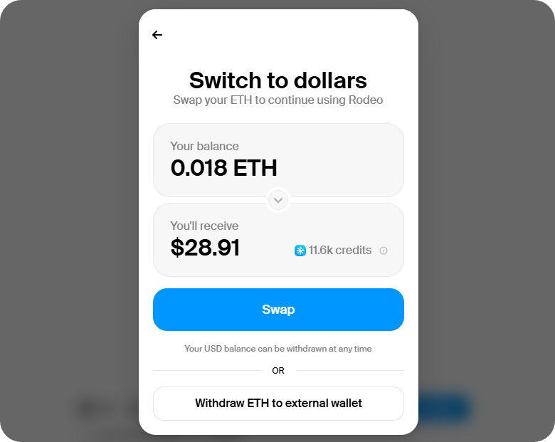 The reasoning makes sense. Rodeo is already laser-focused on streamlined UX, e.g. one-tap collecting and logins via email or Instagram. And ETH introduces friction, math, and volatility when onboarding non-crypto users.