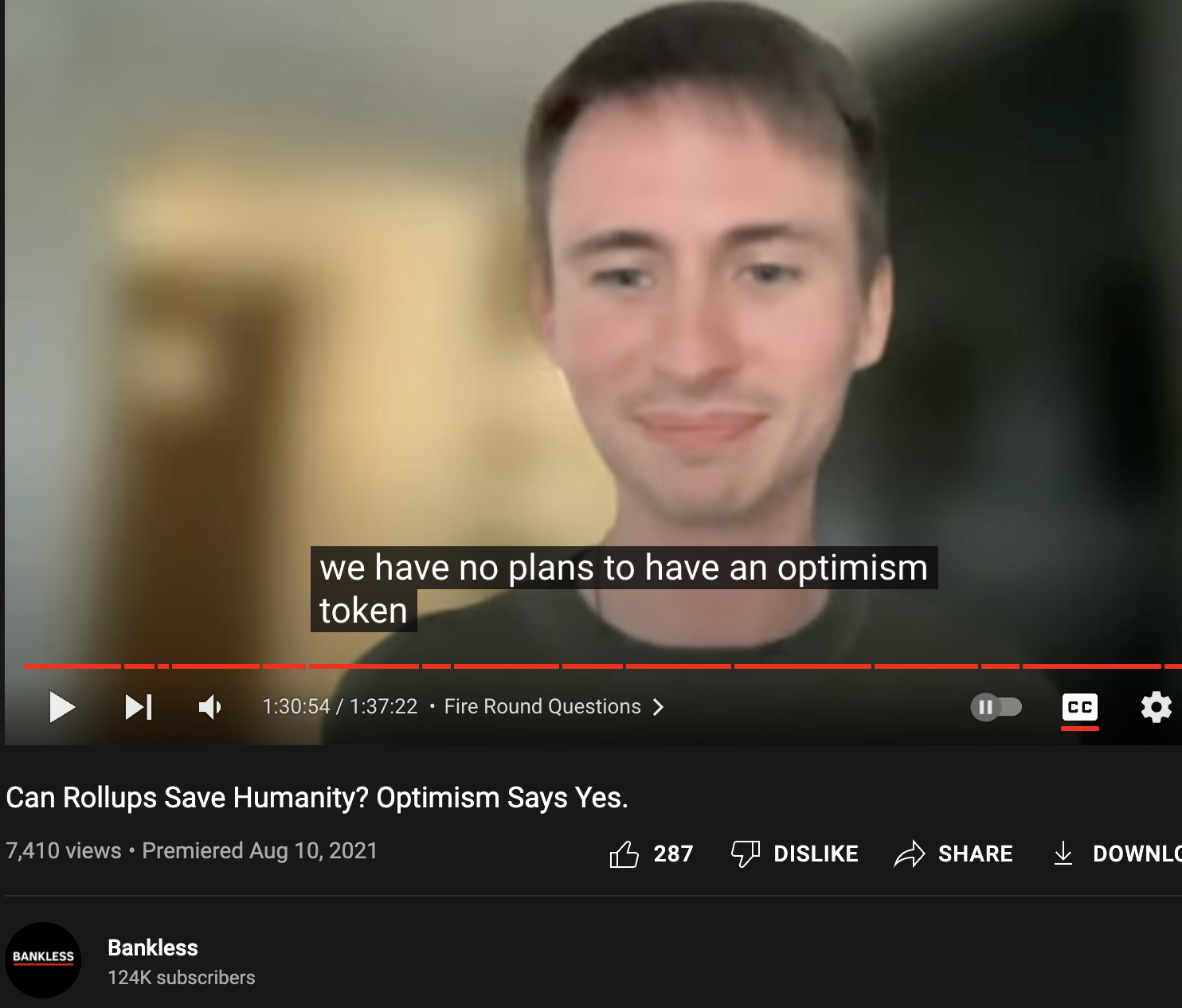 The Optimism said on our podcast recently they have no plans for a token.