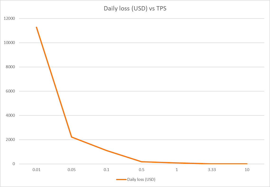Polynya’s model projected that as TPS increases, tx fees will break even at 3.33 TPS and keep decreasing from there. Matter Labs concurs: “Currently, the service operates as close as possible to break-even costs and will remain so until the system becomes decentralized.”