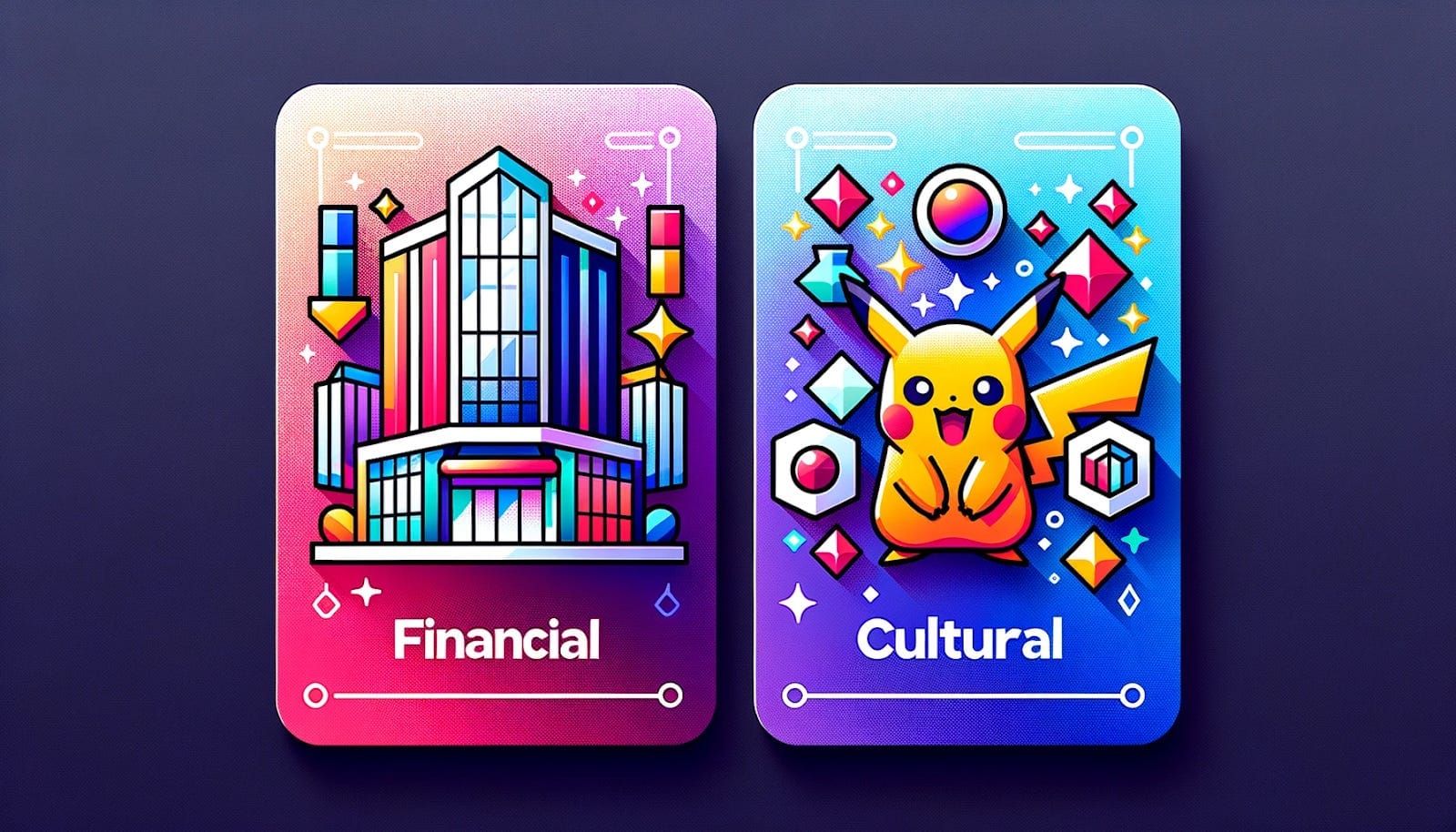 Conversely, on the cultural side of things NFTs have become the tokenization tool of choice since they’re suited to being mapped 1:1 to distinct collectibles, for example a 1st-edition “mint condition” Charizard card that isn’t interchangeable with a 2nd-edition “great condition” Charizard, etc.