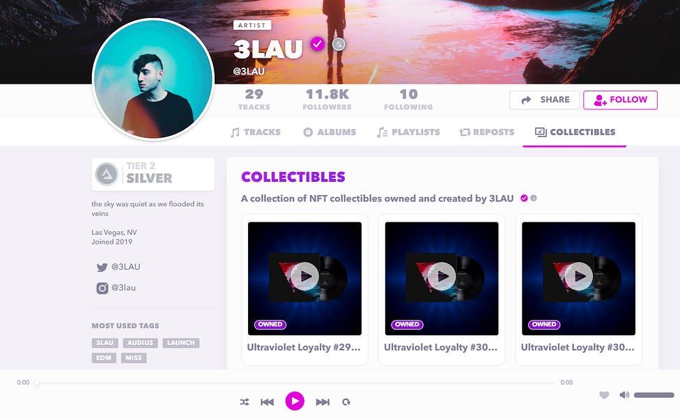 That’s because Audius offers tiered services depending on how much $AUDIO users hold. Out of the gate artists with Silver Tier accounts, which means they hold at least 100 $AUDIO, can use Audius Collectibles. So the demand to use NFTs on Audius is now contributing to the demand for $AUDIO, which in extension supports the entire project.