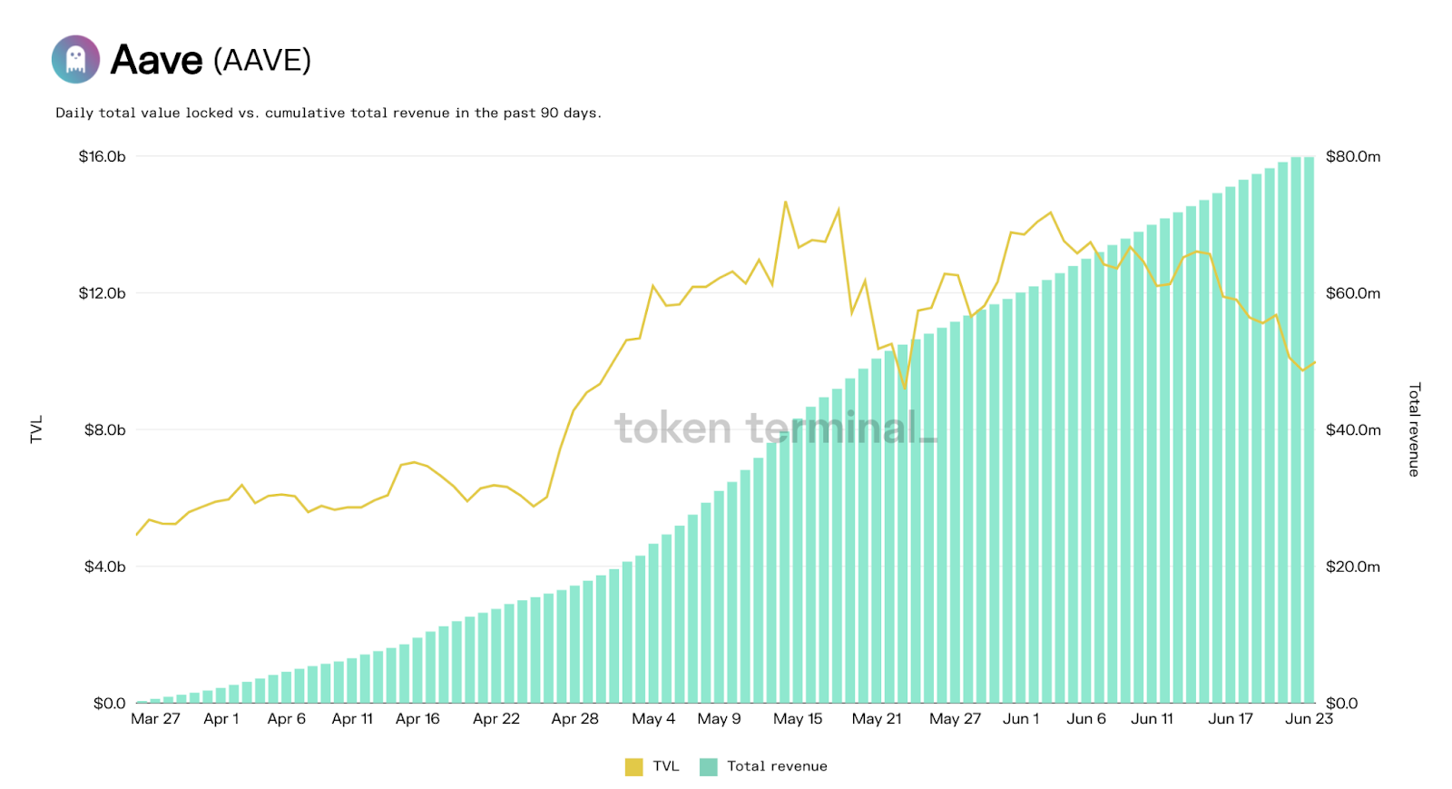 Aave’s Revenue to TVL ratio over the same period was $0.032, with $319.6 million of annualized revenue and current TVL of $10.0 billion.
