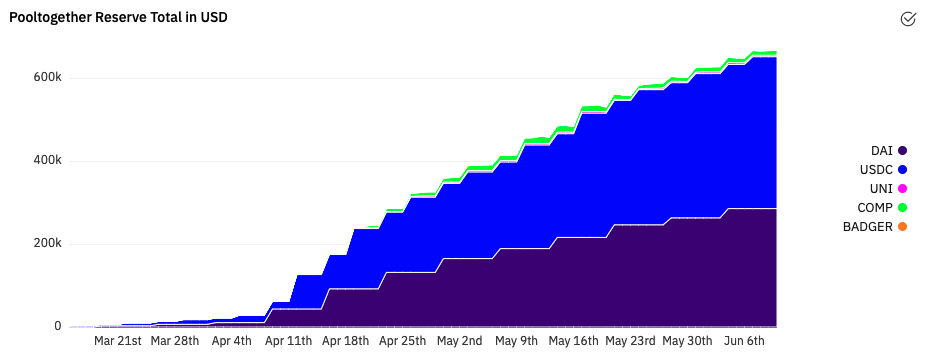 What’s really interesting is that as PoolTogether continues to launch new prize pools, their reserves (and therefore their treasury) continues to diversify, addressing a growing issue across DeFi today where treasuries are predominately denominated in their protocol’s token. While the value of these prize pools will move up and down with the markets, the count of tokens in the pool reserves are set to grow with every payout.