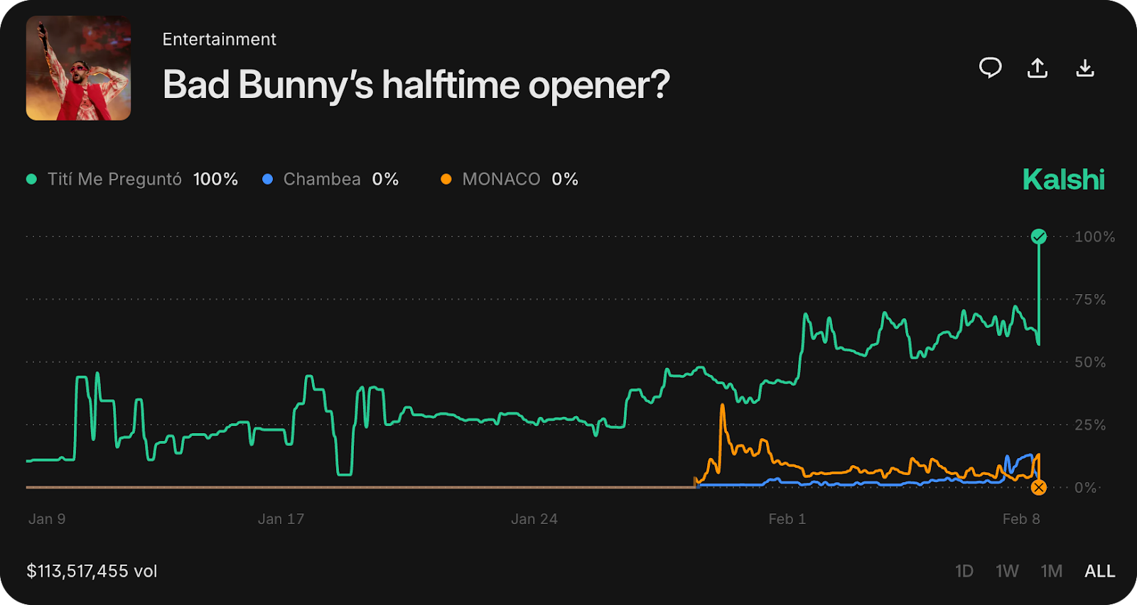 - Bad Bunny Halftime Opener Song: $113.5M