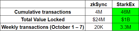 Instead of getting into the technical details, today we’re looking at the implementation of zkRollups by comparing Matter Labs and Starkware—both have functioning zkRollups with money flowing through them!