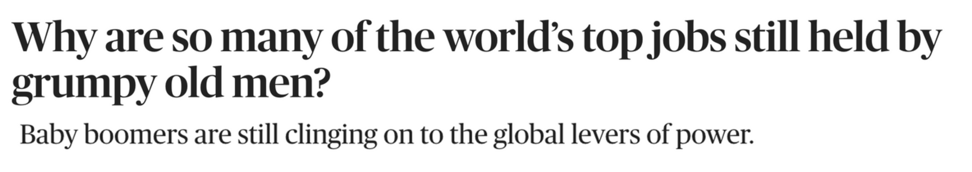 But just like everything else in this universe, institutions age. What was originally built to benefit all of society now only works for a small part of society. Older generations were able to enjoy the best years of these newly established institutions, and they latched onto them and never let them go. Rather than passing the torch to younger generations, and allowing the institutions of the 21st century to adapt, evolve, and be inclusive of further generations, older generations instead captured these 21st-century institutions and sucked them dry.