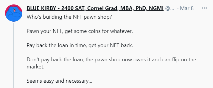 The next frontier for DeFi pawnshops is less liquid crypto assets that are difficult to value at the moment. Enter the domain of non-fungible tokens (NFTs).