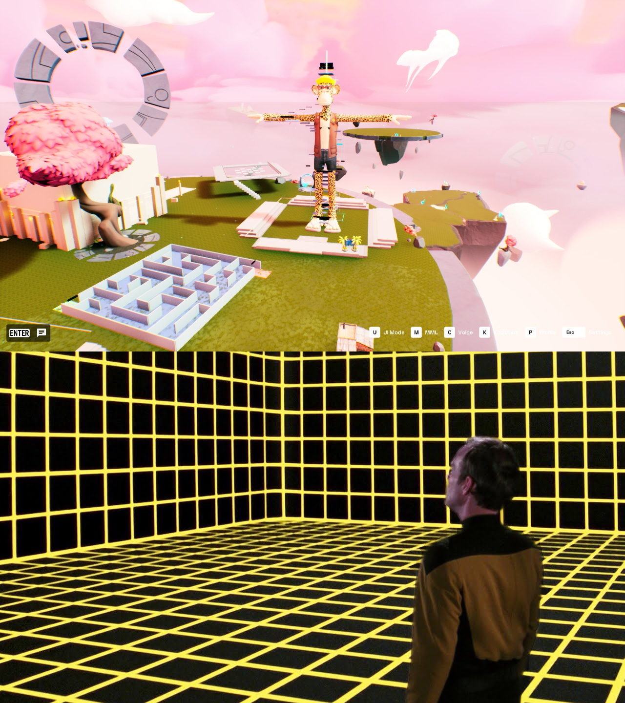 This onchain layer can be the canonical substrate, and then AI can polish the visual surface. Run the bare-bones autonomous world as the always-on foundation, and then upscale it through an AI rendering system, or a Holodeck, etc. The chain is the physics engine, and technologies in Perez's VR layer are the graphics cards.