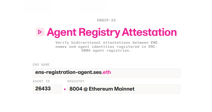 For agents, the same will be true. Relatedly, ENS recently introduced ENSIP-25, a standard for creating a verifiable link between an AI agent's onchain registry entry (via ERC-8004) and an ENS name so others can easily confirm and vet an agent's identity.