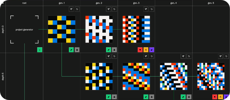 Once you hold a locked seed, you can spend additional art coins and a small ETH fee to evolve it into a new child NFT. That child edition inherits the full array of its ancestor hashes, making a lineage of unique but related outputs.