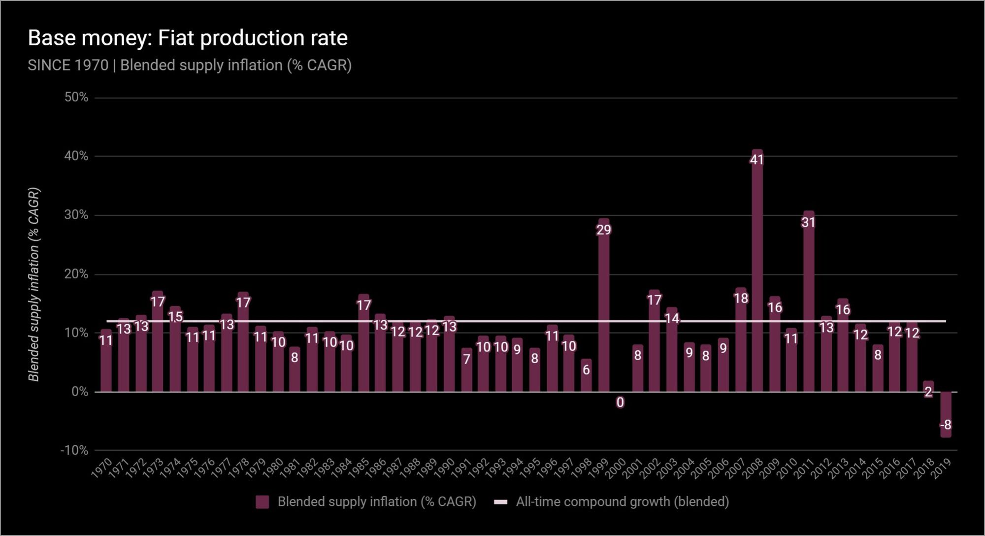 (Above) Issuance of fiat—41% in 2008 alone—graphic from Crypto Voices Feb 2020