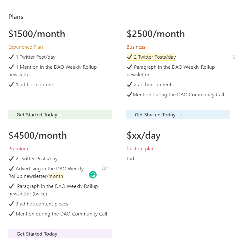 The marketing guild is the first of many to standardize their offerings, just like companies and services do within a broader economy. Transparent pricing and deliverables will make it easier for other guilds and projects to budget for future expenses and make for more efficient capital usage.