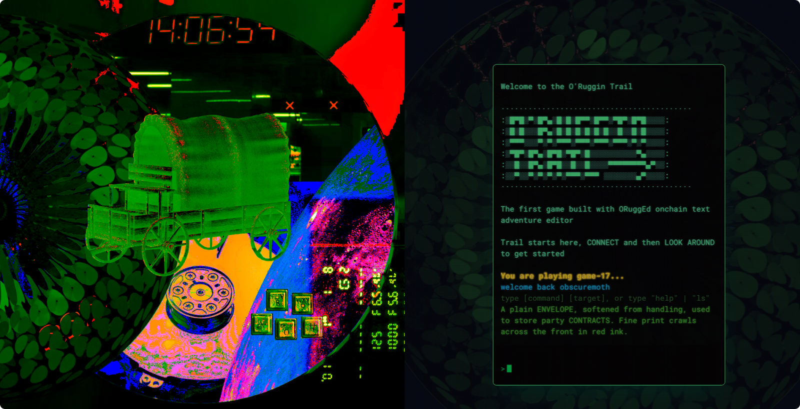 O'Ruggin Trail walks and talks like a text adventure game, sure. But underneath its surface, it’s a permissionless, interactive story engine with a shared dungeon crawl experience. And it's pointing toward more advanced recreational possibilities onchain in the years ahead.