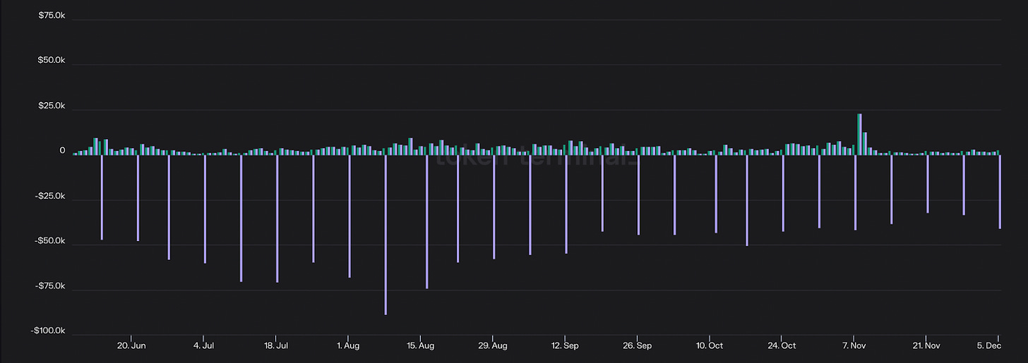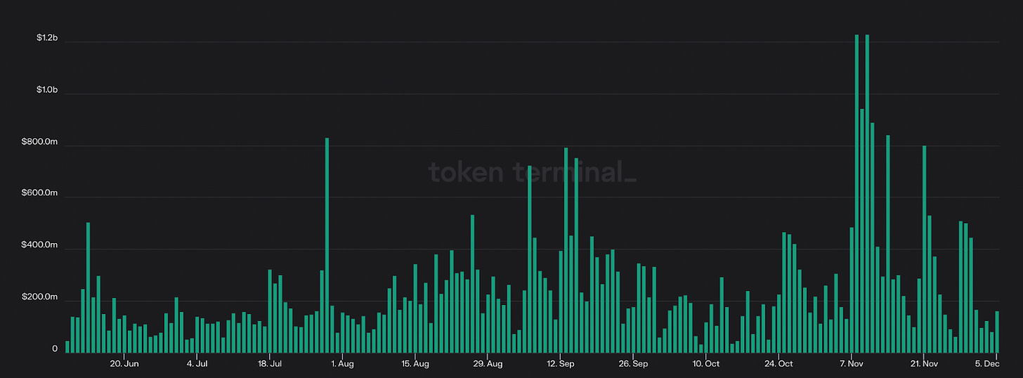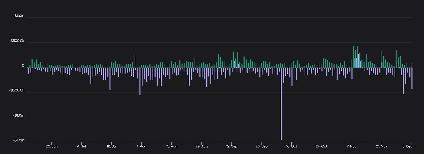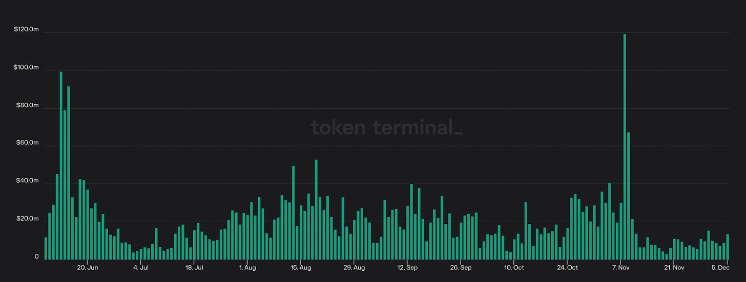 However, its tokenomics are worst in class. dYdX Trading, not the DAO or DYDX holders, captures all protocol revenues. The DYDX token also suffers from perpetual sell-pressure as a result of liquidity incentives, though this may change with the launch of dYdX V4.