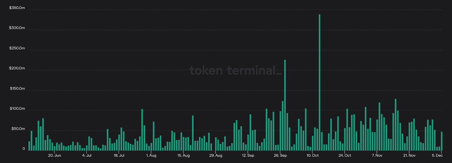 This design and the ease of managing these positions have led perps to explode in popularity and establish the sector as a core component of crypto market structure. Perps volumes exceed that of spot, as it's the primary way for traders to open leveraged long or short positions.
