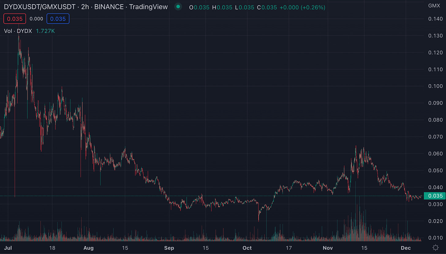 So while DYDX seems to have the superior product, the decentralized perpetuals sector appears to be yet another clear example that in crypto, the product is not the token.