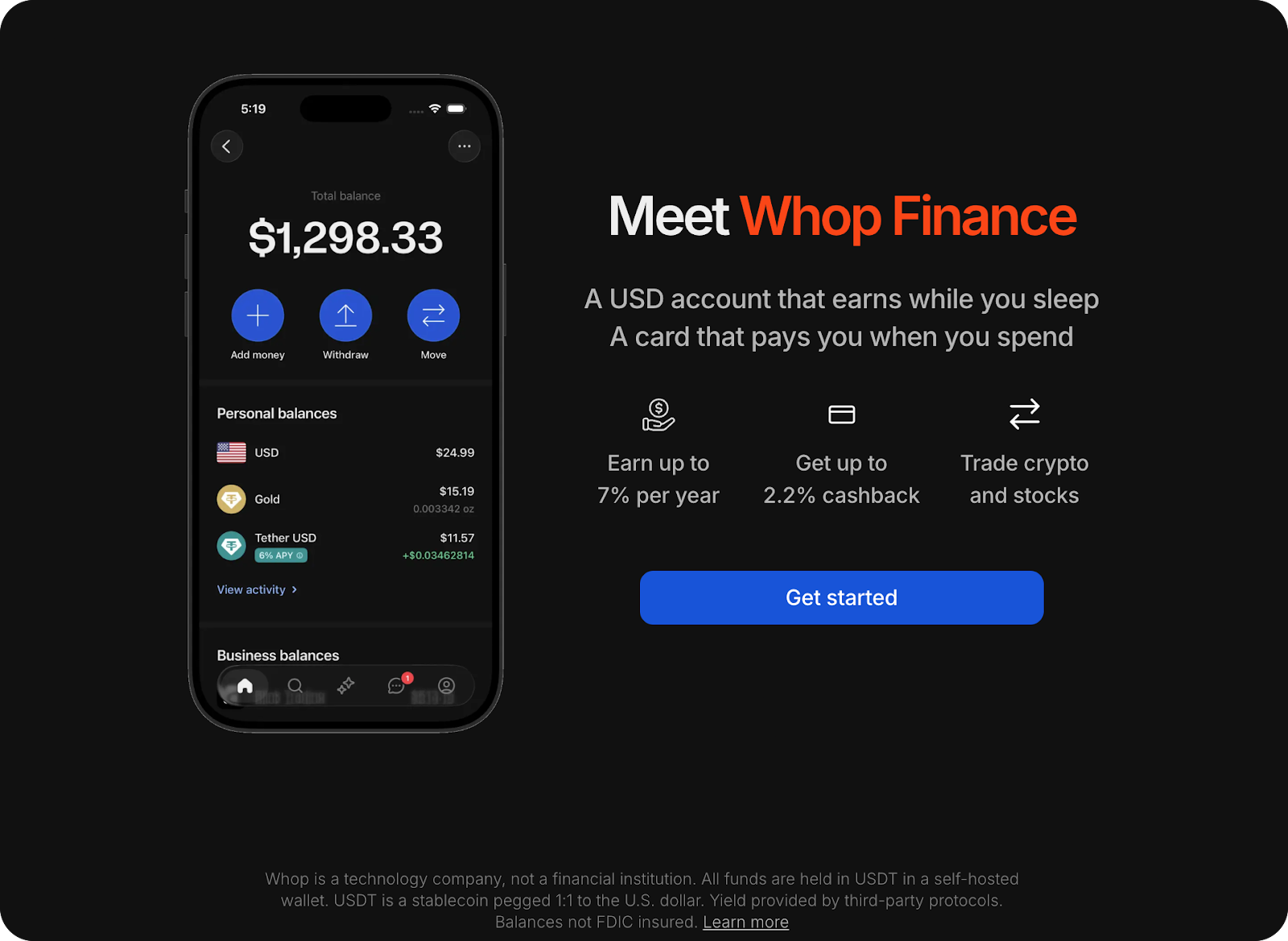 An opt-in yield layer, Treasury, when enabled, converts user earnings or deposits into USDT, which are routed to Aave on Plasma, the USDT-centric stablecoin blockchain. Whop says Treasury is the first product of Whop Finance, a broader financial toolkit that hints at a card and tools for trading crypto and stocks.