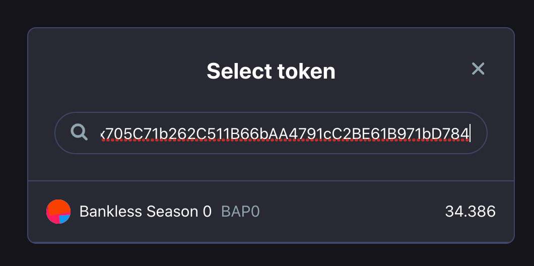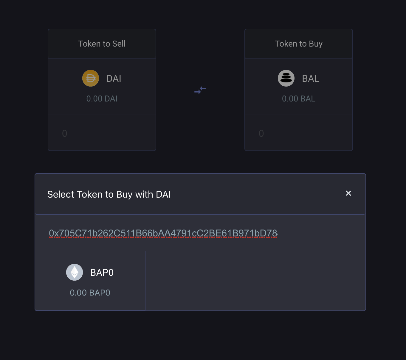 Here we pasted in the address to BAP0, and Balancer automatically found the token. Hit Enter!