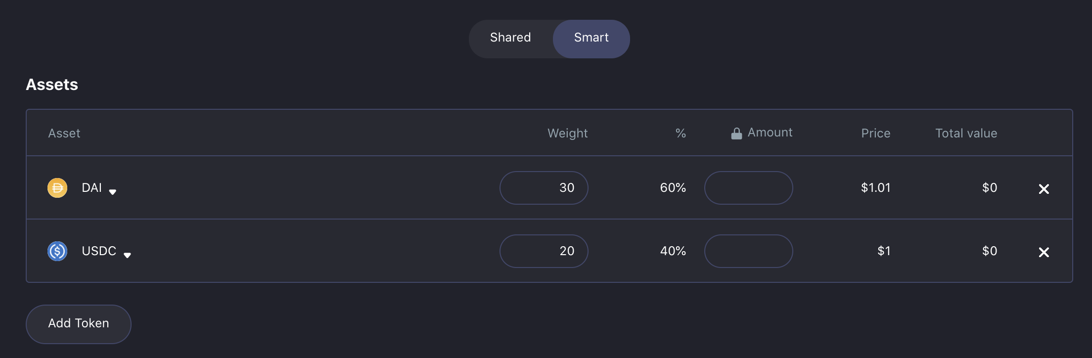When accessing the UI for minting a Balancer Smart Pool, this will be the first thing you see: