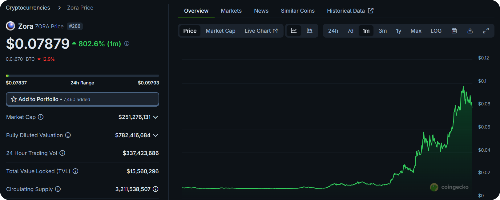 Moreover, they've brought an influx of attention and value accrual to the $ZORA token, which is up a whopping 800% over the past month.
